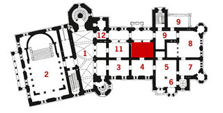 Die Wandgemälde im Arbeitszimmer stellen die Tannhäuser-Sage dar. Wie in der gleichnamigen Oper Wagners wird sie mit dem Sängerkrieg auf der Wartburg verknüpft.